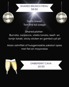 Tijdens onze shared brunch op 1 maart gaan we met ze allen genieten van de klassiekers uit 80’s en 90’s. Vanaf 13:00 uur zijn jullie van harte welkom. De prijs bedraagt 59,50 per persoon. Tot dan!
